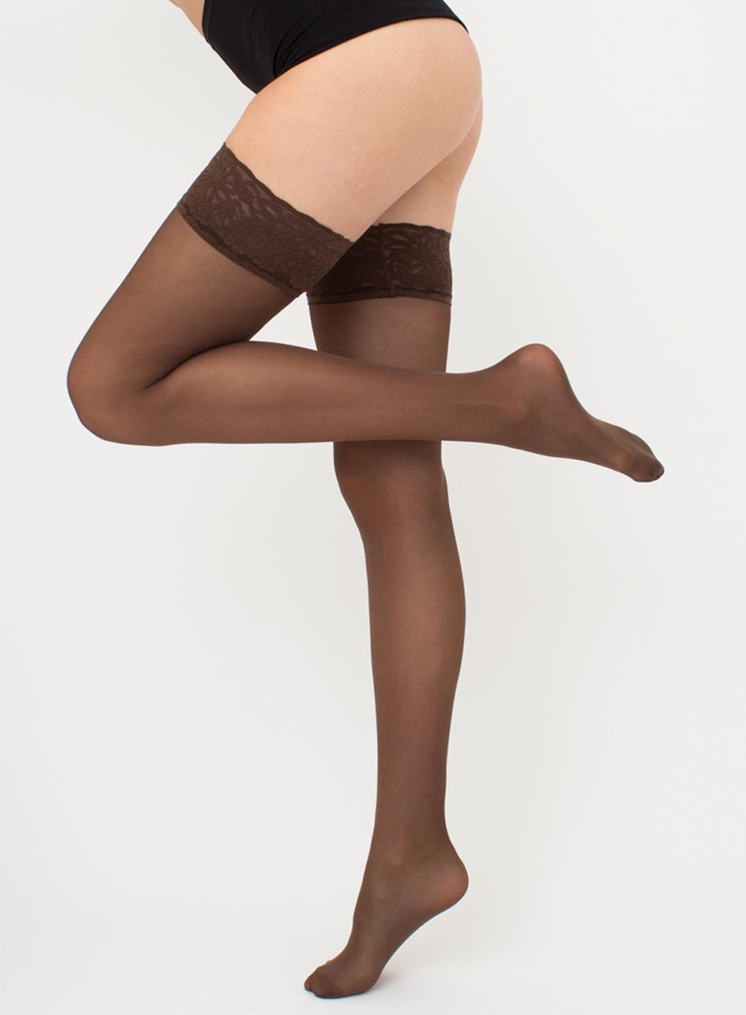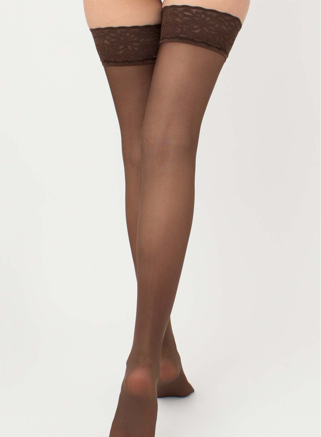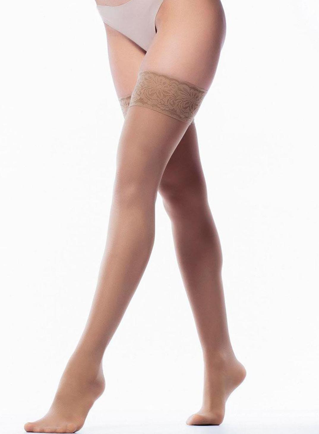 Superbe bas autofixants 40 deniers de la marque GIULIA. Large jarretière dentelle raffinée et finement travaillée